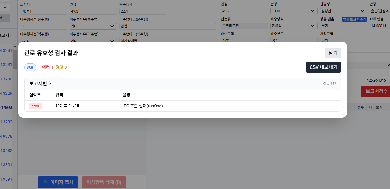 관로14-19668관로가 에러가 나는데 왜이런건지 알려주세요 삭제도 안되요