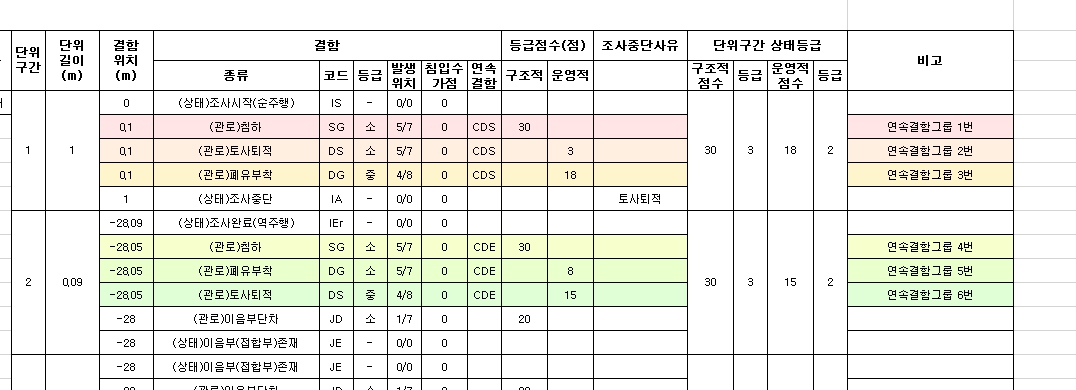 정주행 중단/역주행 완주 시 조사중단 지점이 이음부 중간지점일때 단위구간 점수 계산 오류
