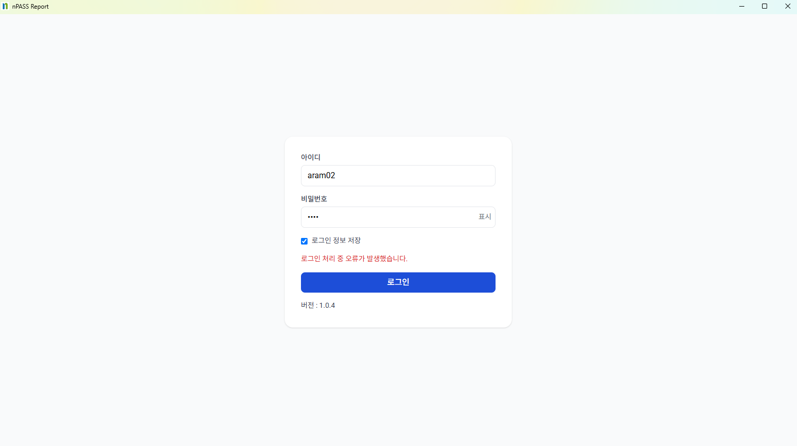 로그인 에러 나면서 프로그램 구동 안됩니다 -삭제 후 재설치 해도 동일합니다