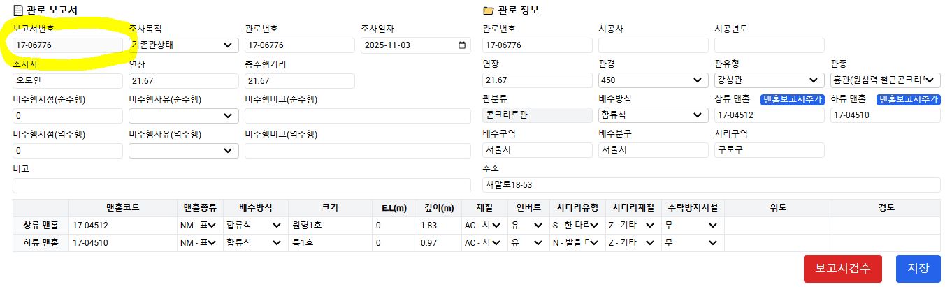보고서 정보 입력 관련 문의사항이 있습니다.