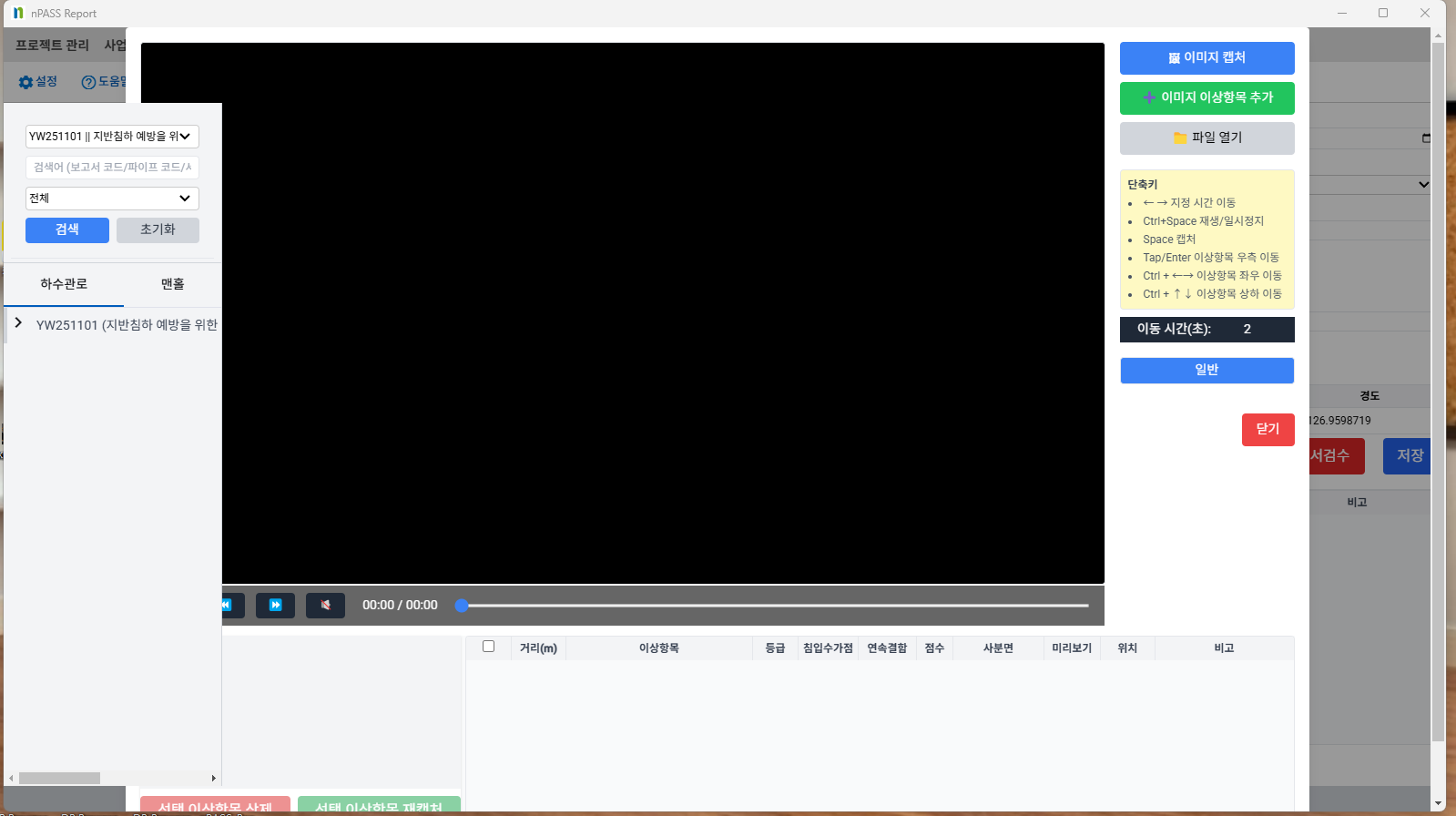 노트북으나 작은 모니터 사용시 (하수관로,맨홀)정보 창 때문에 동영상 왼쪽화면이 가려져 이상항목 캡쳐후 동영상 플레이가 안됩니다. 조치 바랍니다.